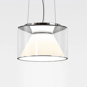 Wie die Pendelleuchte Zoom wurde auch die Decken- bzw. Hängeleuchte Annex bereits mit mehreren Preisen ausgezeichnet und beleuchtet mit moderner LED-Lichttechnik. Der faszinierende Effekt dieser Designer-Deckenleuchte wird dabei durch die unterschiedlichen Reflektoren im Innern des mundgeblasenen Kegelschirms hervorgerufen. Je nachdem, welcher Reflektor ausgewählt wurde, z.B. aus Kristallglas oder opalem Acryl, können ganz differenzierte Lichtszenarien im Raum erzeugt werden. Das Design dieser geradezu archetypischen Deckenleuchte mit dem gewissen Mehr an Funktionalität stammt von dem bekannten Frankfurter Produktgestalter Prof. Uwe Fischer.