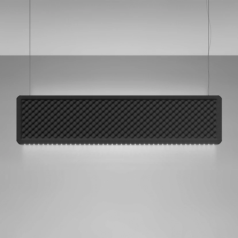 Bei der Konzeption der LED-Hängeleuchte Eggboard stand nicht nur das Licht, sondern auch auf die akustische Wirkung im Fokus. Das Material sowie die Oberflächen-Struktur sind schallabsorbierend und genau so ausgelegt, dass eine für die Frequenzen der menschlichen Stimme optimierte Raumakustik unterstützt wird.