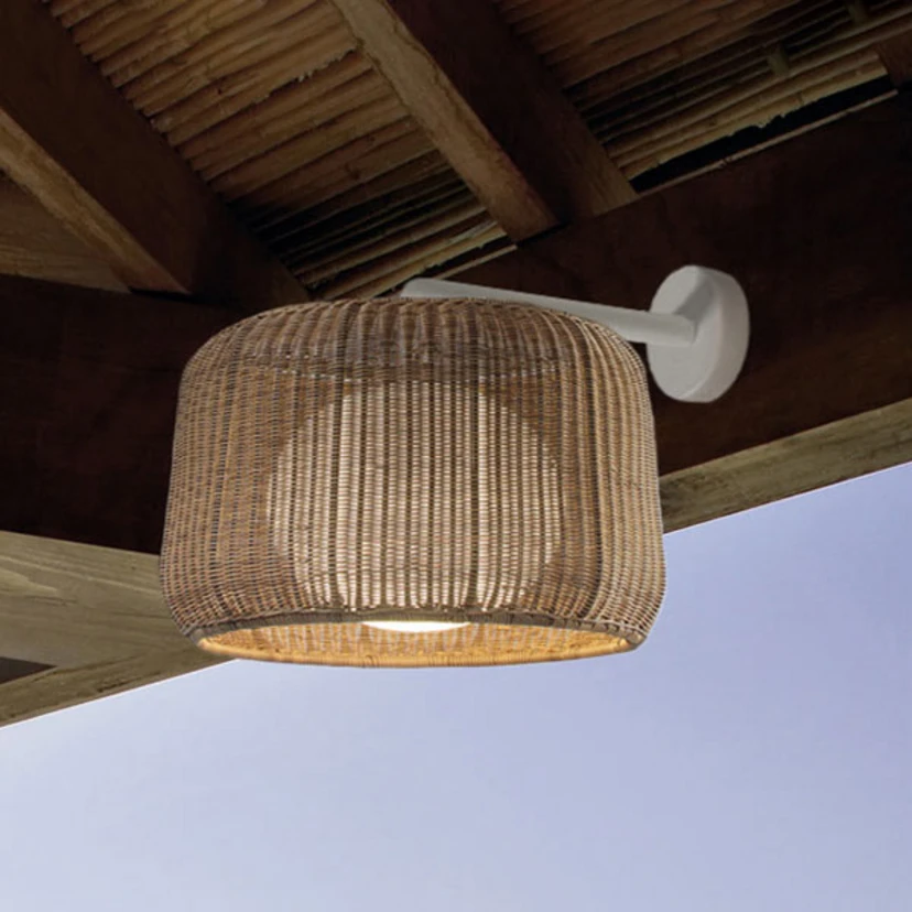 Exklusive Designer-Außenwandleuchte Fora A aus handgefertigtem Korbgeflecht
