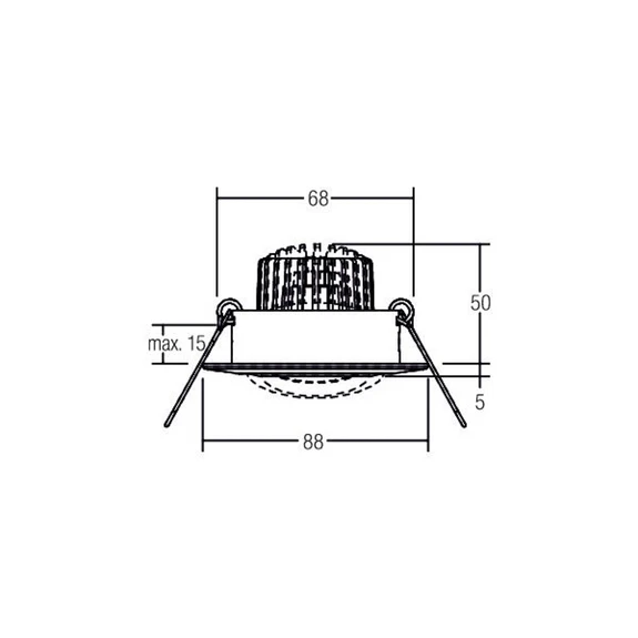 Wird das Downlight über einen externen Phasenabschnittdimmer gedimmt, verändert sich durch die Funktion dim-2-warm die Lichtfarbe. Während bei voller Helligkeit warmweiße Beleuchtung mit 3.000 K Farbtemperatur abgestrahlt wird, verringert sich die Farbtemperatur während des Dimmvorgangs bis auf 1.800 K in der niedrigsten Dimmstufe.