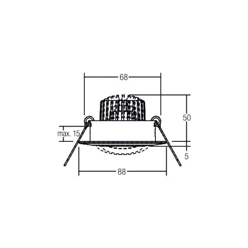 Wird das Downlight über einen externen Phasenabschnittdimmer gedimmt, verändert sich durch die Funktion dim-2-warm die Lichtfarbe. Während bei voller Helligkeit warmweiße Beleuchtung mit 3.000 K Farbtemperatur abgestrahlt wird, verringert sich die Farbtemperatur während des Dimmvorgangs bis auf 1.800 K in der niedrigsten Dimmstufe.