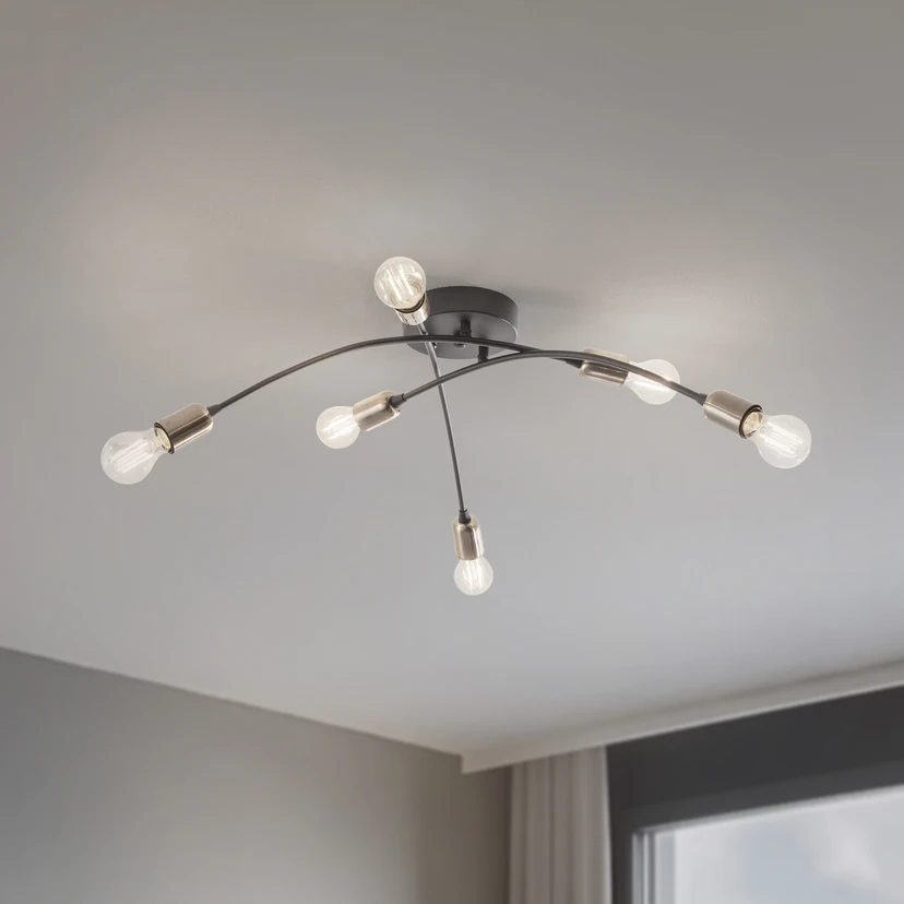 Die Deckenleuchte Banana in elegantem Schwarz vereint ein modernes Design mit funktionaler Vielseitigkeit. Gefertigt aus hochwertigem Metall, fügt sie sich nahtlos in verschiedene Wohnbereiche wie Wohnzimmer, Esszimmer, Flurbereich und Küche ein. Mit ihren sechs E27-Fassungen bietet sie eine beeindruckende Lichtleistung, die jeden Raum in ein angenehmes Ambiente taucht.