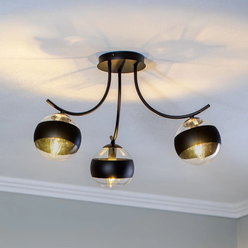 Deckenleuchte Boston, schwarz/klar, 3-flammig