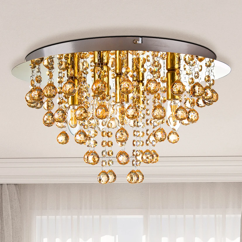 Die Deckenleuchte London vereint modernes Design mit einer luxuriösen goldfarbenen Oberfläche und hochwertigen Materialien wie Acryl und Metall. Mit ihrer fünf-flammigen Konstruktion sorgt sie für eine gleichmäßige und beeindruckende Lichtverteilung, die jedem Raum eine stilvolle Atmosphäre verleiht. Ob im Wohnzimmer oder Schlafzimmer – diese Leuchte setzt Akzente und wird zum Blickfang in jeder Umgebung.