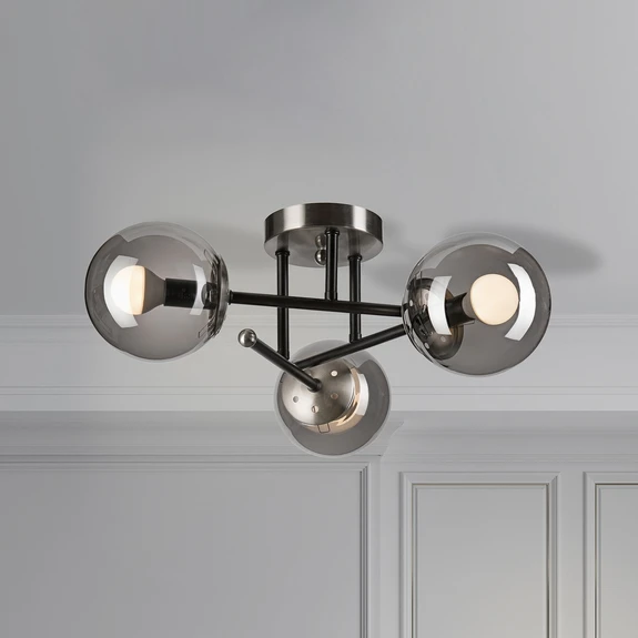 Deckenleuchte Malena mit rauchgrau-transparenten Glasschirmen