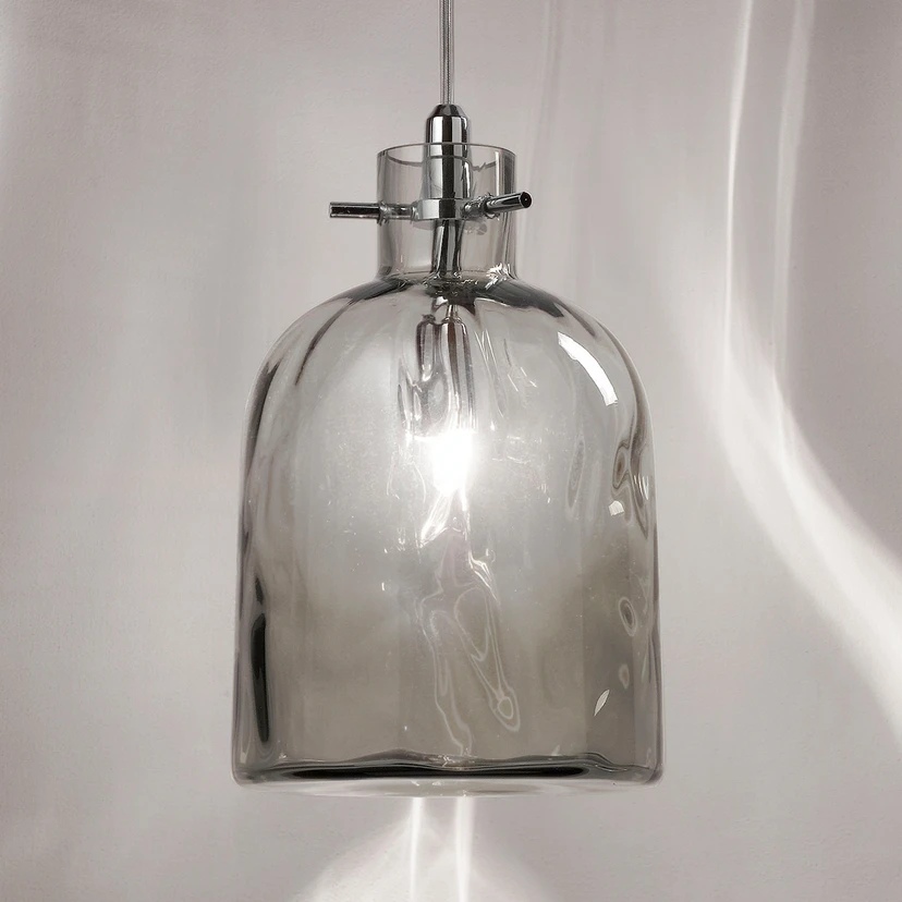 Effekt- und stimmungsvolle Beleuchtung spendet die Designer-Pendelleuchte Bossa Nova, deren Schirm aus einer mundgeblasenen Flasche besteht. Durch die leichte Tönung des Glases und die wellige Struktur entsteht eine gemütliche Beleuchtung und es werden tolle Lichteffekte an Wände und Gegenstände in der Umgebung geworfen. Bossa Nova ist eine nicht alltägliche Pendelleuchte, die nicht nur im Wohn- oder Schlafzimmer, sondern zum Beispiel auch im Flur für Aufsehen sorgt.