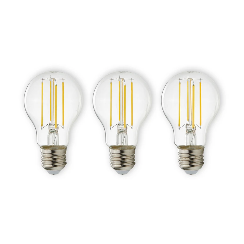 E27 LED-Lampe in Birnenform, 7W, klar, 2.700 K, Filament - in praktischem 3er-Set