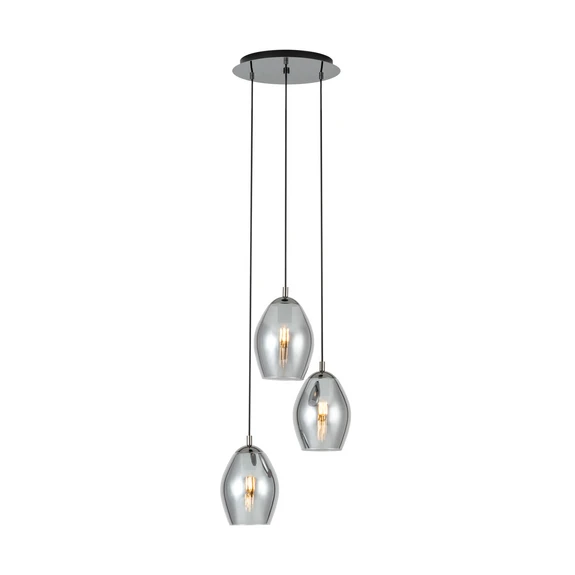 Die Hängeleuchte Estanys vereint modernes Design mit hochwertigen Materialien Glas und Stahl. Diese 3-flammige Leuchte in Nickel-schwarz und mit schwarz bedampften Schirmen ist ein Blickfang in jedem Ess- oder Wohnzimmer. Die klare Linienführung und die raffinierte Farbgebung unterstreichen die zeitlose Ästhetik und fügen sich harmonisch in verschiedene Einrichtungsstile ein. In den Schirmen sitzen E27-Fassungen, die mit Leuchtmitteln nach Wahl bestückt werden können. Mit dem Einsatz dimmbarer Leuchtmittel lässt sich die Leuchte über einen externen Dimmer auch dimmen.