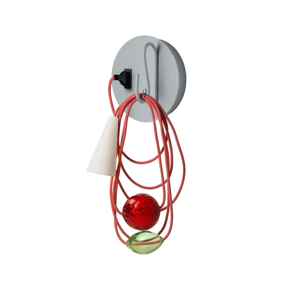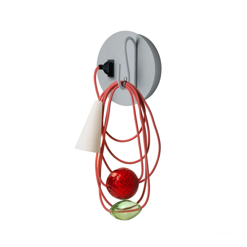 Durch ihr auffälliges Design wird die LED-Wandleuchte Filo zu einem ganz besonderen Blickfang in der Wohnumgebung und kommt ideal im Wohnzimmer oder im Flurbereich zur Geltung. Dank ihrer unterschiedlichen Farbvarianten fügt sie sich problemlos in verschiedene Einrichtungsstile ein - entweder als dezenter Lichtspender oder als bunte Leuchte, die für einen farbenfrohen Akzent im Wohnbereich sorgt. Filo setzt sich aus unterschiedlichen Elementen und Materialien zusammen. Das Gestell besteht aus Metall, das Kabel verfügt über eine Textilummantelung und zwei dekorative Objekte aus mundgeblasenem und handgefertigtem Glas sowie einen weißen Schirm aus Porzellan, der das Leuchtmittel umschließt und das warme Licht blendfrei an die Umgebung strahlt.