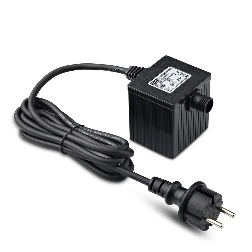 Dieser Transformator ist die Basis des Garden 24V-Systems, der 230V in 24V umwandelt und so alle Komponenten des Systems versorgen kann. Je nach Anzahl und Wattage der verbundenen Komponenten kann der Trafo mit 36 Watt oder 60 Watt maximaler Last gewählt werden. Der Transformator hat die Schutzart IP64 und verfügt über ein langes Verbindungskabel für die Wandsteckdose.