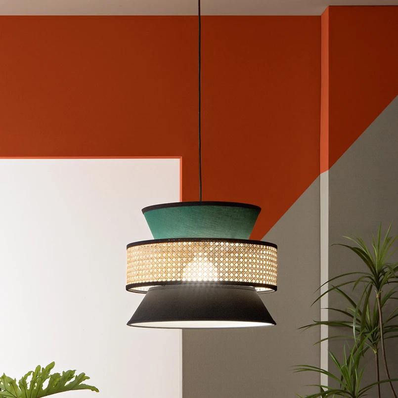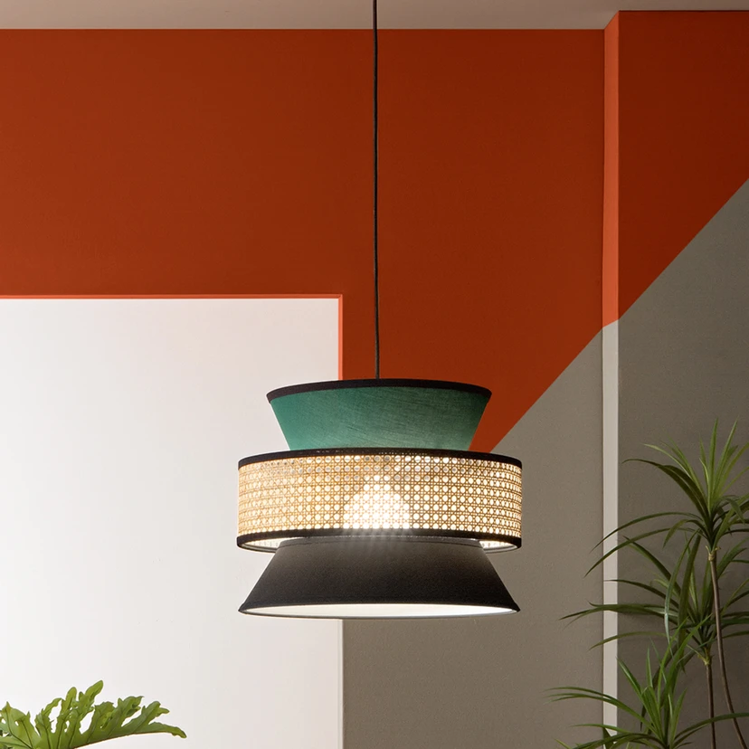 Die Hängelampe Gazebo vereint natürliche Eleganz mit einem harmonischen Farbspiel aus Grün, Schwarz und Naturtönen. Gefertigt aus einer Kombination von Stoff und Rattan, bringt sie eine warme und einladende Atmosphäre in jeden Raum. Ob im Wohnzimmer, Esszimmer, Schlafzimmer oder Flurbereich – diese Lampe fügt sich nahtlos in verschiedene Einrichtungsstile ein und setzt dabei stilvolle Akzente.