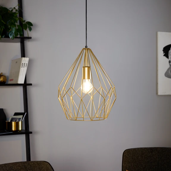 Goldfarbene Hängeleuchte Carlton mit offenem Käfigschirm
