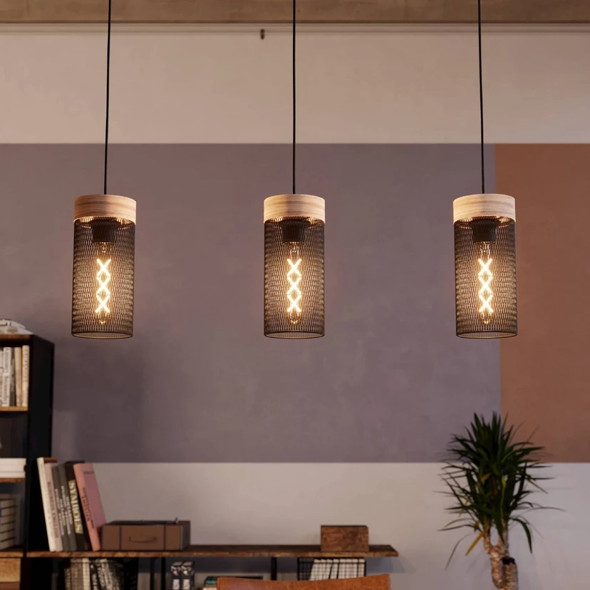 Hängeleuchte Kilnsdale, Länge 81 cm, schwarz/braun, 3-flg.,