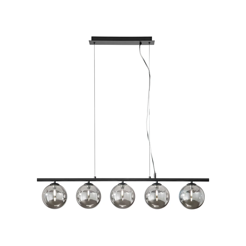 Hängeleuchte Neptun, rauchgrau, Länge 100 cm, 5-flg., Glas