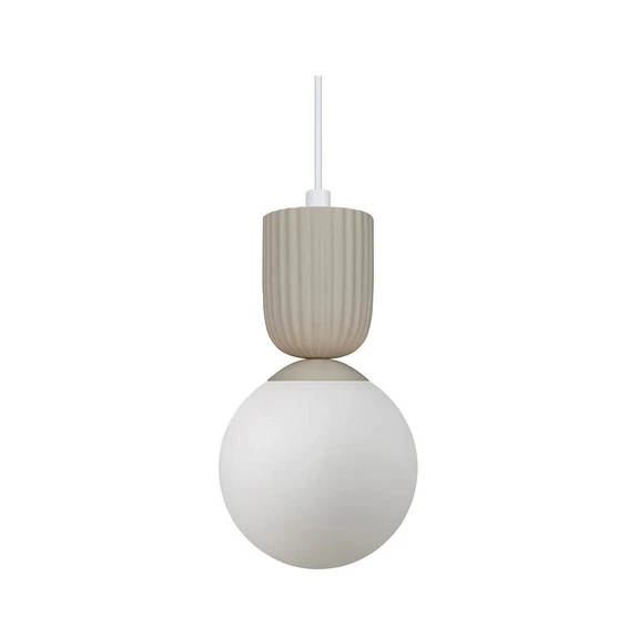 Diese Pendelleuchte eignet sich perfekt für eine gemütliche Atmosphäre im Wohnzimmer, über dem Esstisch oder in der Eingangshalle. Die Farben Beige und Opal passen zu den meisten Einrichtungsstilen und verleihen Ihrem Zuhause einen Hauch von Eleganz und Wärme.