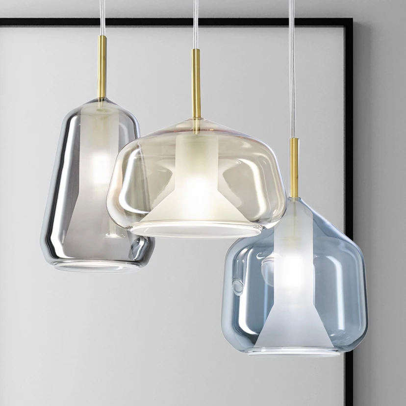 Dreiflammige Hängeleuchte X-Ray mit Glasschirmen in unterschiedlichen Gestaltungen