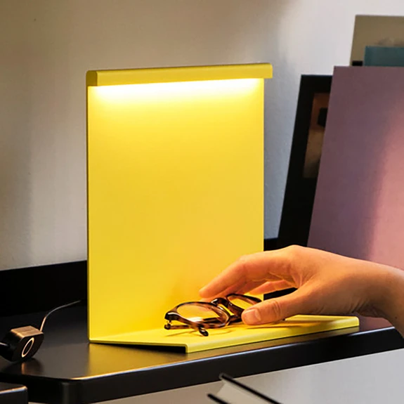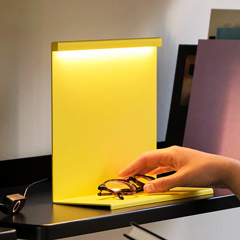 Für die aus dünnen Ebenen vertikalen Stahlblechs konstruierte LED-Tischleuchte LBM ließ sich der mexikanische Designer Moisés Hernández von den Arbeiten seines Landsmannes Luis Barragan, einem Architekten, inspirieren. In diesem Entwurf spiegelt sich seine Faszination für monolithische Geometrie, Farbe, Licht und Schatten wider.