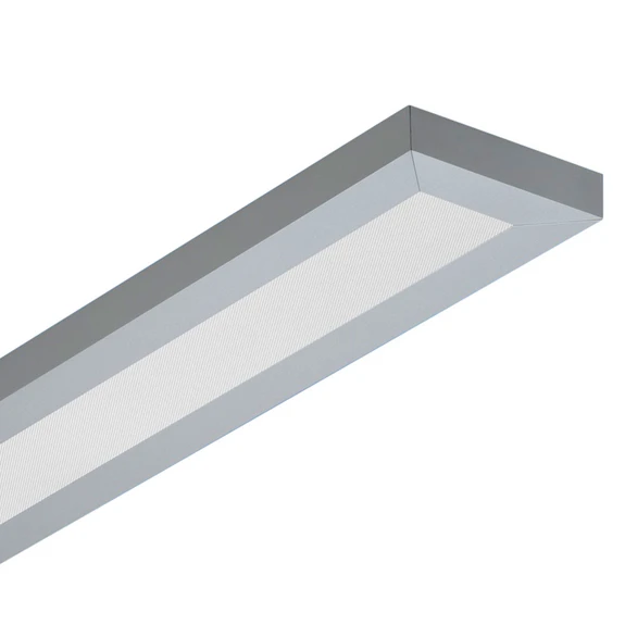 Bildschirmarbeitsplätze in Büros oder Tische in Konferenzräumen lassen sich mit der LED-Hängeleuchte LAP ebenso effizient wie auch angenehm blendfrei ausleuchten. Dies wird vor allem durch das rechteckige, ultraflache Aluminium-Strangpressprofil mit Gehrungsschnitten ermöglicht, das mittig mit einer speziellen Diamant-Microprismenscheibe ausgestattet ist. Letztere reduziert Lichtblendungen auf ein Minimum und sorgt gleichzeitig für eine gleichmäßige Ausstreuung des Lichts. Durch das titansilberne Finish ein dezenter Blickfang.