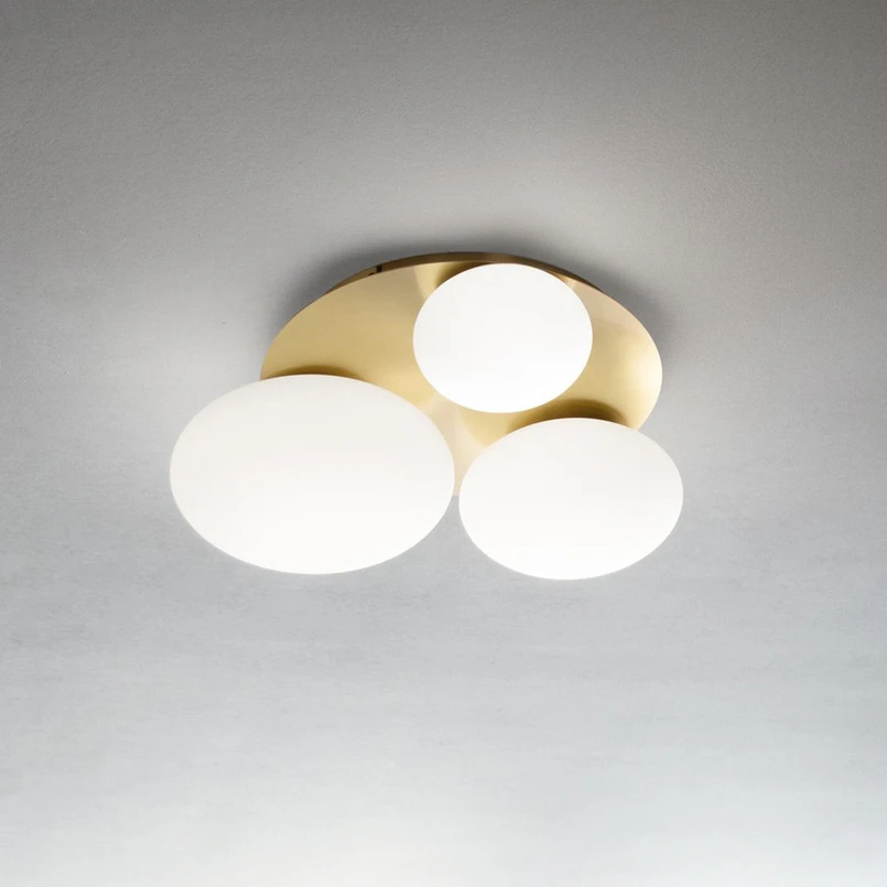 Runde Deckenleuchte Ninfea in Messing mit drei Opalgläsern