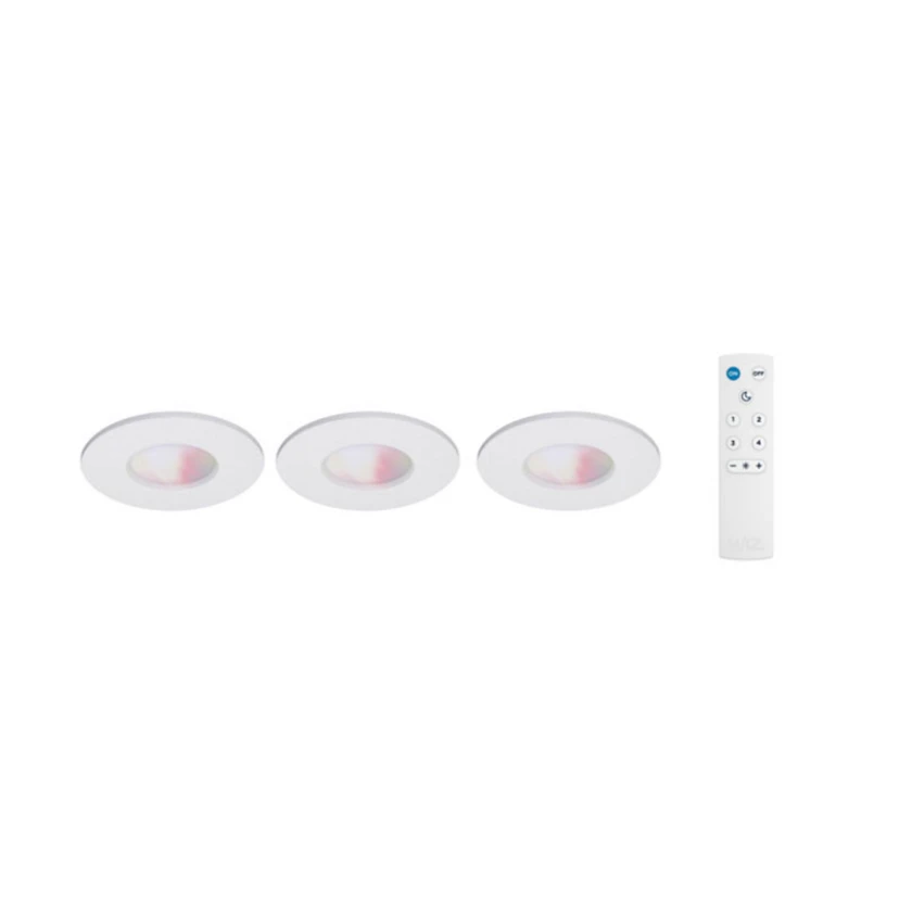 Nach Einbindung in das heimische WLAN können die drei Einbauleuchten gleichzeitig mit der passenden WiZ-App gesteuert, gedimmt und geschaltet werden. Zusätzlich kann auch ein Sprachassistent, wie zum Beispiel Amazon Alexa oder Siri verwendet werden, um mit einem simplen Befehl die Lichtszene zu ändern. Alternativ kann die mitgelieferte Fermbedienung zur Steuerung genutzt werden.