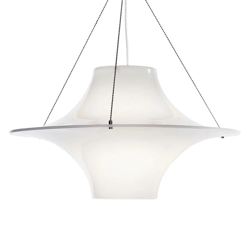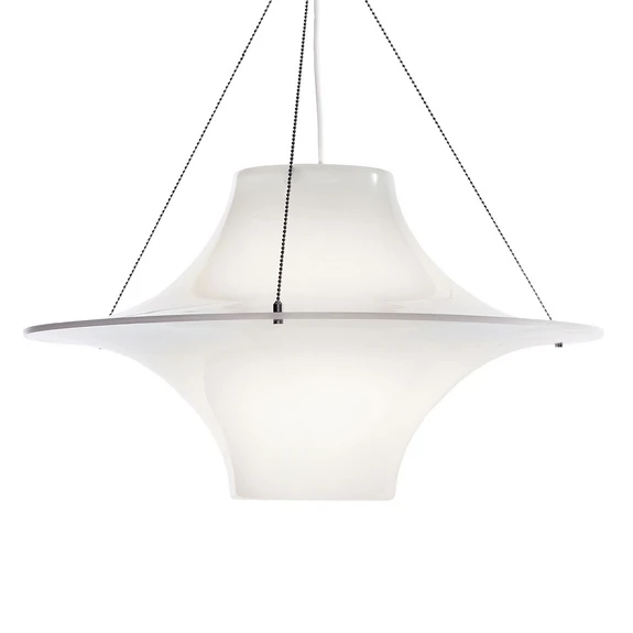 Lokki ist ein Modell, das bereits 1960 von dem Finnen Yki Nummi entworfen wurde und sich heute getrost als Designklassiker bezeichnen lässt. Die Hängeleuchte gilt außerdem als Pionier unter den Kunststoffleuchten. Der weiße Kunststoffschirm ist es auch, der für eine blendfreie und gleichmäßige Verteilung des Lichts sorgt.