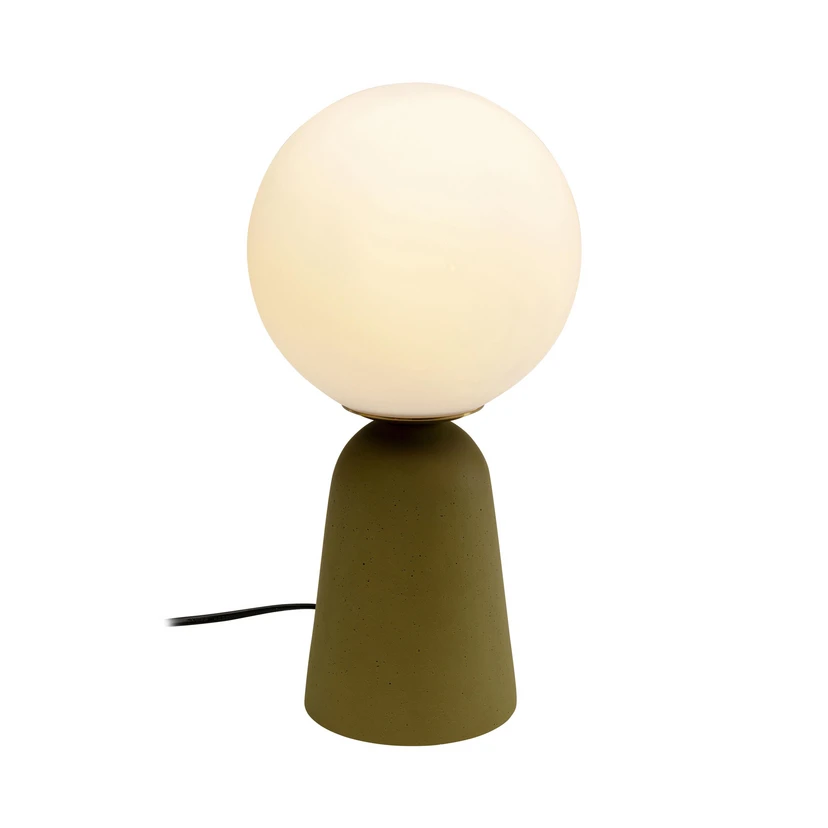 Tischlampe Bollie mit Betonsockel und Kugelschirm aus Opalglas
