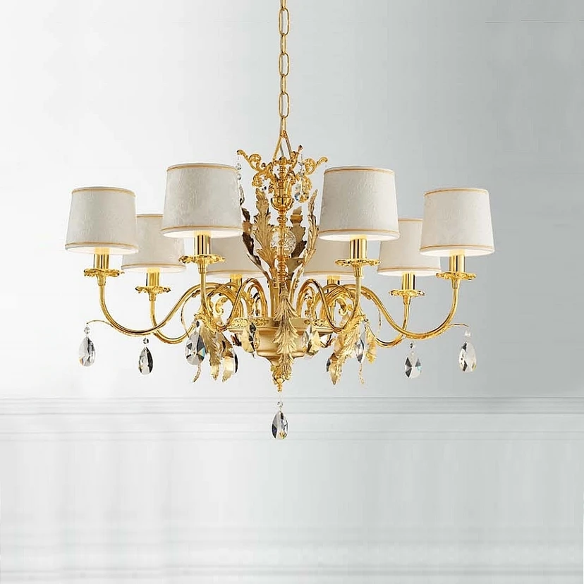 Kronleuchter Angelis m. Damastschirmen 8fl gold