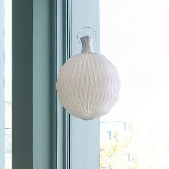Ein wunderschönes Designobjekt ist diese Pendelleuchte, die kunstvoll von Hand gefaltet wurde und mit diesem individuellen Erscheinungsbild für stimmungsvollen Lichtschein und stilistische Besonderheit sorgt. Die Pendelleuchte wurde bereits im Jahr 1944 designt und kann daher ohne Umschweife als besonderer Klassiker unter den Designerlampen bezeichnet werden. Jedes Produkt ist durch die Handfertigung ein Unikat und muss vorsichtig behandelt werden, damit die Leuchte lange Freude bietet und nicht beschädigt wird.
