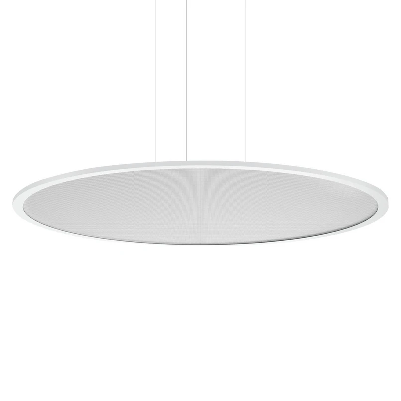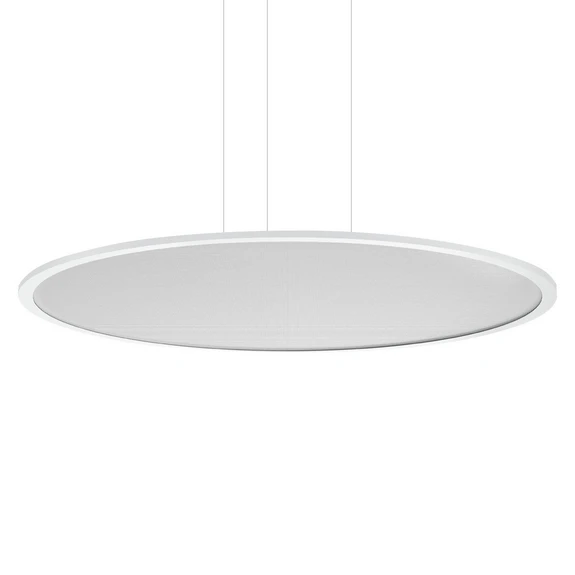 Die LED-Hängeleuchte ist lichttechnisch, funktional wie optisch eine vielseitig einsetzbare Wahl zur direkten Beleuchtung für moderne Geschäfts- und Büroräume. Dank der Kombination aus seitlicher Lichteinspeisung (LED Sidelight-Technologie), hochtransmittierendem Lichtleiter und mikroprimatischer Kunststoffabdeckung wird eine blendarme, gleichmäßige und breite Lichtwirkung erzielt, die auch Bildschirmarbeitsplätze normgerecht (DIN EN 12464-1) illuminiert. Die flache, runde Leuchte wird von einem Rahmen aus Aluminiumdruckguss in kratzfester, weißer Pulverbeschichtung umfasst.