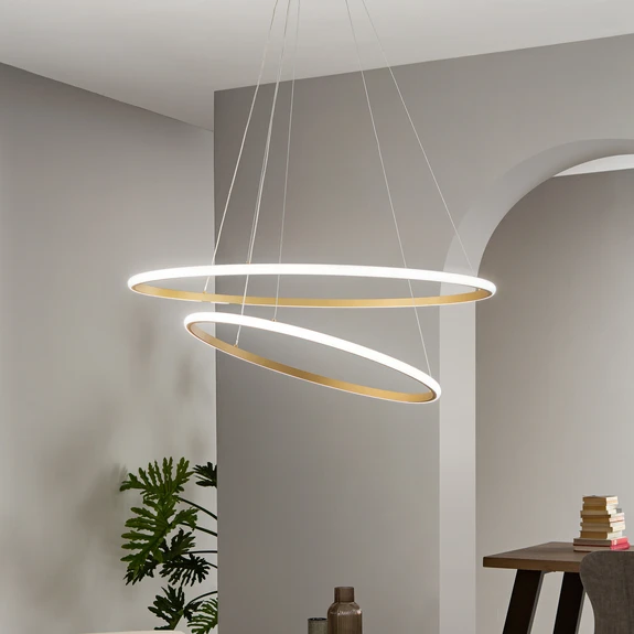 LED-Pendellampe Axis im Farbton Gold – Flexibilität in Lichtfarbe und Design
