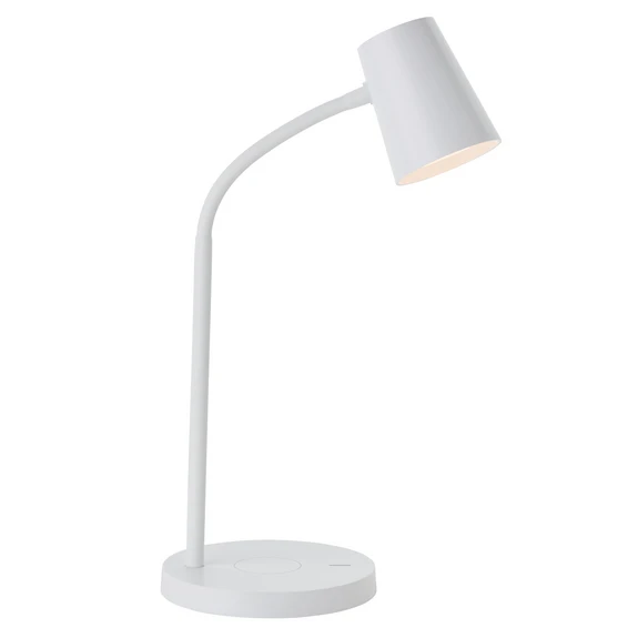 Die moderne LED-Tischleuchte Illa ist die ideale Beleuchtung für den Arbeitsplatz. Ihr Leuchtenkopf kann verstellt und das Licht in drei Stufen in der Helligkeit gedimmt werden. Dazu hat sie auf dem Gestell unten eine Induktionsladefläche, die es möglich macht, zum Beispiel das Smartphone kabellos aufzuladen.