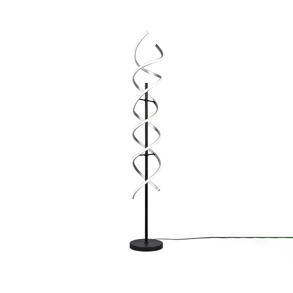Die aus Aluminium bestehende LED-Stehleuchte Sequence ist in Form einer Spirale gestaltet. Über einen Schalter an der Oberseite des Gestells lässt sich die Farbtemperatur einstellen. Hier stehen zwei warmweiße Töne (2.300 K / 3.000 K) sowie universalweißes Licht (4.000 K) zur Wahl. Gleichzeitig ist es über den Schalter möglich, die Intensität stufenlos zu dimmen.