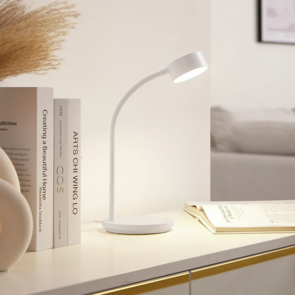 Mit einem flexiblen Arm und dadurch ausrichtbarem, runden Leuchtenkopf ist diese LED-Tischleuchte individuell einsetzbar. Ihr schlankes Gestell und das zurückhaltende Design sorgen dafür, dass sich für sie überall ein Platz findet und dank des USB-Anschlusses kann mit dem beiliegenden USB-Kabel sogar am Laptop aufgeladen werden. Die Lichtfarbe und die Lichthelligkeit können über den Taster jeweils in drei Stufen eingestellt werden.