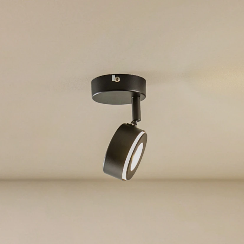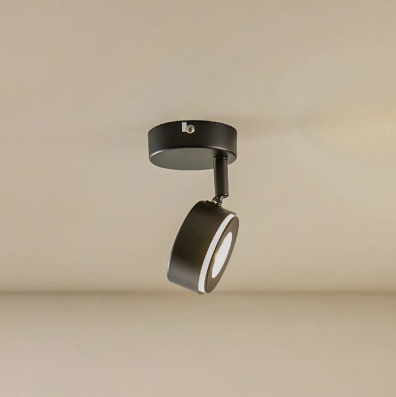 Der einflammige Deckenstrahler Jyla besteht aus Eisen und verleiht der Umgebung durch sein schwarzes Äußeres eine edle Note. Zugleich fügt er sich durch sein dezentes Design mühelos in unterschiedliche Wohnbereiche ein. Er lässt sich beispielsweise ideal als Lichtspender für den Flurbereich, die Küche sowie das Wohn- oder Esszimmer nutzen. Der runde Schirm ist verstellbar und sorgt damit für eine individuelle Ausrichtung des Lichts und eine optimale Ausleuchtung des Raums. Das GX53-Leuchtmittel ist im Lieferumfang enthalten.