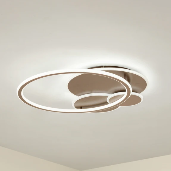 Die LED-Deckenleuchte Circulo in Kaffeebraun vereint modernes Design mit funktionaler Vielseitigkeit. Gefertigt aus Metall, bietet sie eine beeindruckende Farbwiedergabe von 90 Ra, die jeden Raum in ein harmonisches Licht taucht. Mit der integrierten CCT-Funktion lässt sich die Lichtfarbe in 3 Stufen zwischen warmweiß (2.7000 K) und universalweiß (3.800 K + 5.000 K) einstellen, um den individuellen Bedürfnissen gerecht zu werden. Die fest verbauten LEDs sorgen für eine energieeffiziente Beleuchtung, die sowohl im Wohnzimmer als auch im Esszimmer und Flurbereich optimal zur Geltung kommt.