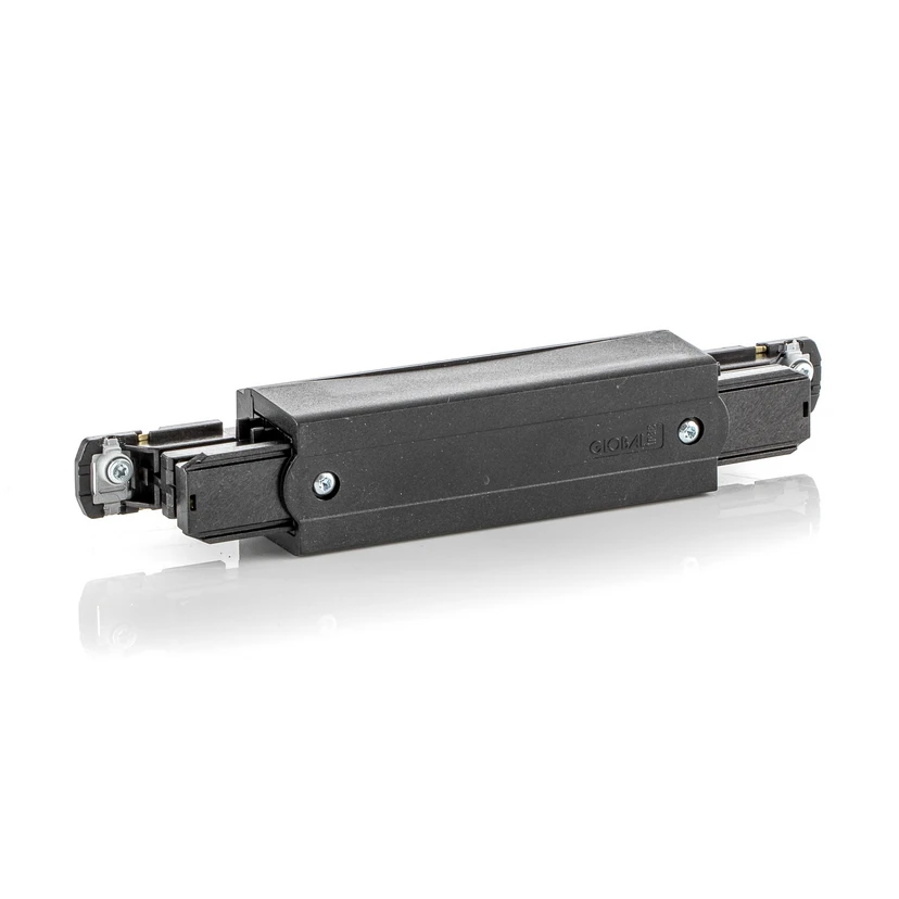 Um Strom auf die Schiene zu bringen, bietet sich der Mitteleinspeiser für die 3-Phasen Stromschine an. Zwischen zwei Schienen eingesetzt, gibt er Strom zuverlässig an beide Schienenteile weiter. Dank der farblich passenden Lackierung fügt sich der Mitteleinspeiser in das komplette System nahtlos ein.