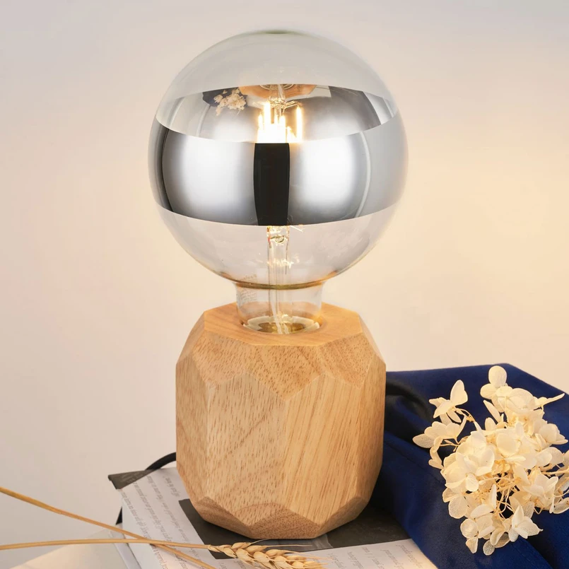 Tischleuchte Woody Sparkle mit ästhetischem Holzgestell