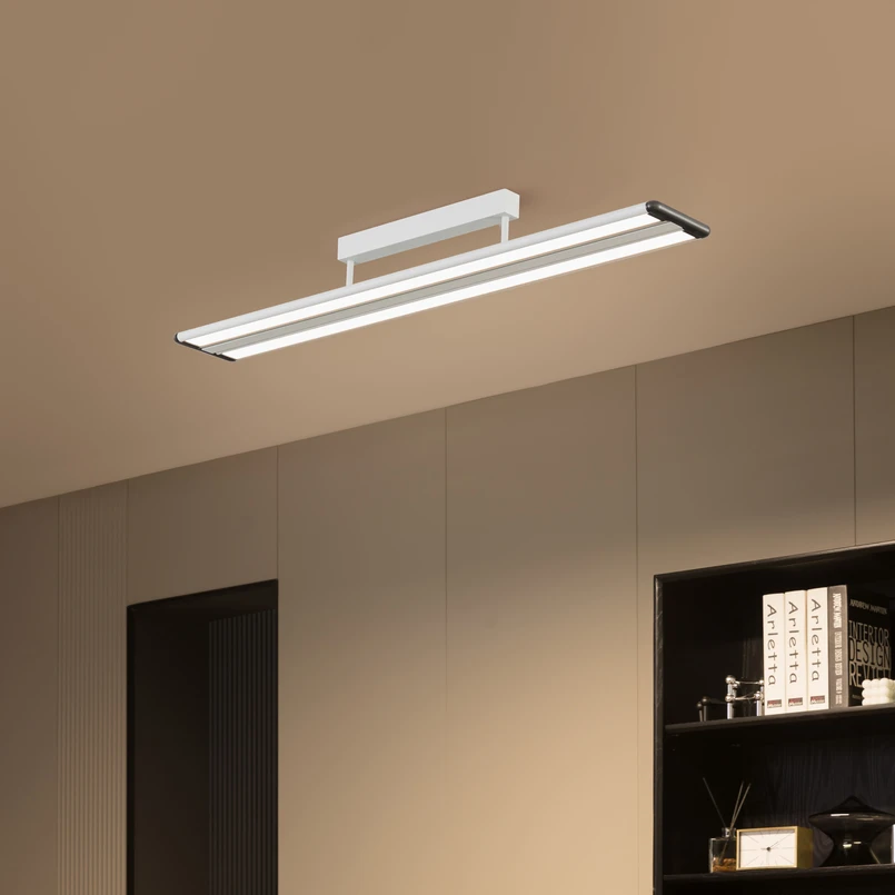 Längliche LED-Büro-Deckenleuchte Yuela in Weiß, DALI dimmbar, exklusives Design
