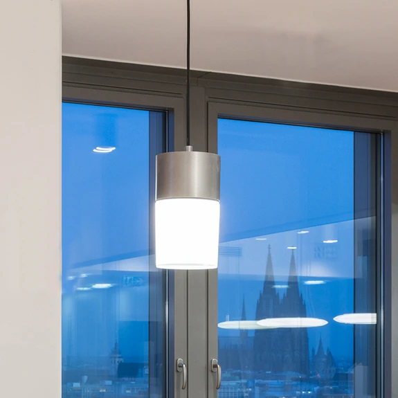 Die Hängeleuchte Cylio erhellt das private Wohn- und Esszimmer, ebenso wie Restaurants, Bars und Lobbys stilvoll und angenehm. Der zylindrische Korpus setzt sich aus einer Aluminiumarmatur in modernem, gebürstetem Edelstahlfinish und einem per Bajonettverschluss unterhalb befestigten Diffusor aus Opalglas zusammen. Dieser sorgt für eine gleichmäßige Lichtstreuung, sodass unterhalb und zu allen Seiten eine gleichmäßige Allgemeinbeleuchtung erzielt wird.