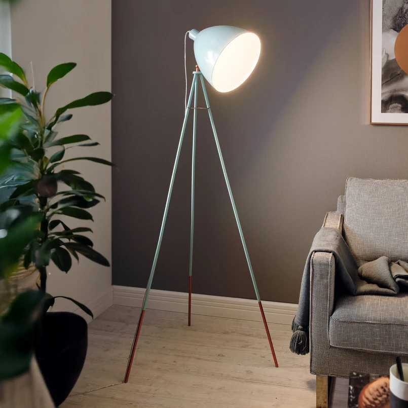 Mintgrüne Stehleuchte Dundee mit Dreibein-Gestell