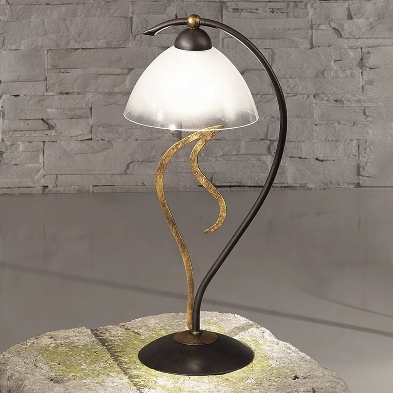 Tischleuchte Amabile, rost-gold mit Glasschirm