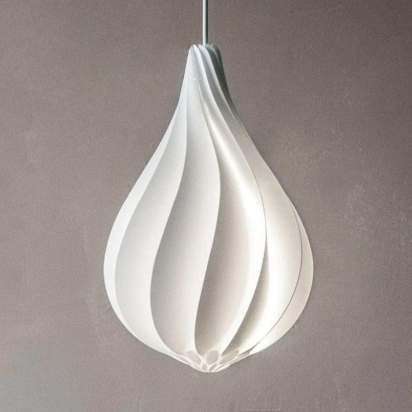 Die Hängeleuchte Alva gleicht einer verschlossenen Blüte, die sich sanft nach oben verjüngt. Auf der Oberfläche zeichnen sich fließende, geschwungene Linien ab, die durch die einzelnen, unzerbrechlichen Bestandteile entstehen. Sie sorgen dafür, dass die Leuchte lebendig und aufregend erscheint. Durch die weiße Färbung der Einzelteile und die geschlossene Form wird eine blendfreie Lichtverteilung im ganzen Raum erzeugt. Der Designer Lorenzo Radaelli vergleicht die Leuchte mit der schönen Form der Edison-Glühbirne. Er spricht von einem verführerischen, aber schlichten Design. Durch die reine Form und das ansprechende Design eignet sie sich für jeden modernen Wohnraum und taucht diesen in behagliches Licht.