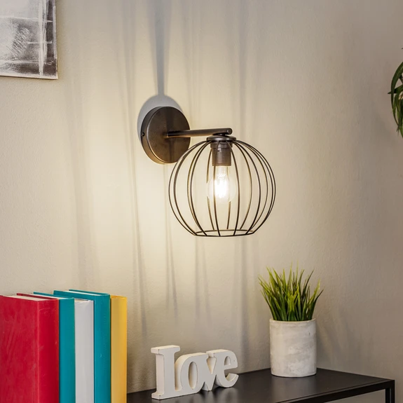 Wandleuchte Madam, schwarz, mit einem Käfigschirm